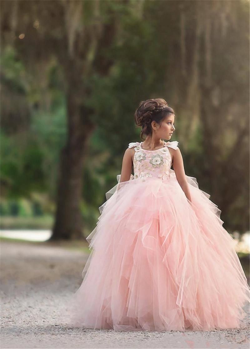 New Luxury Blumenmadchen Kleid Rosa Organza Appliques Blumen
