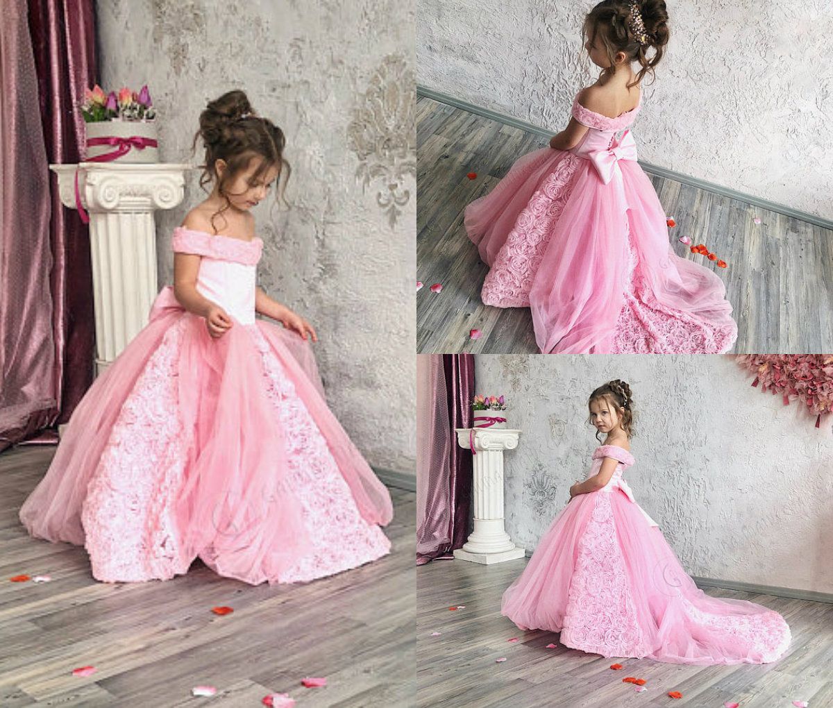 Grosshandel Elegante Blumenmadchen Kleid Rosa Tull Erstkommunion