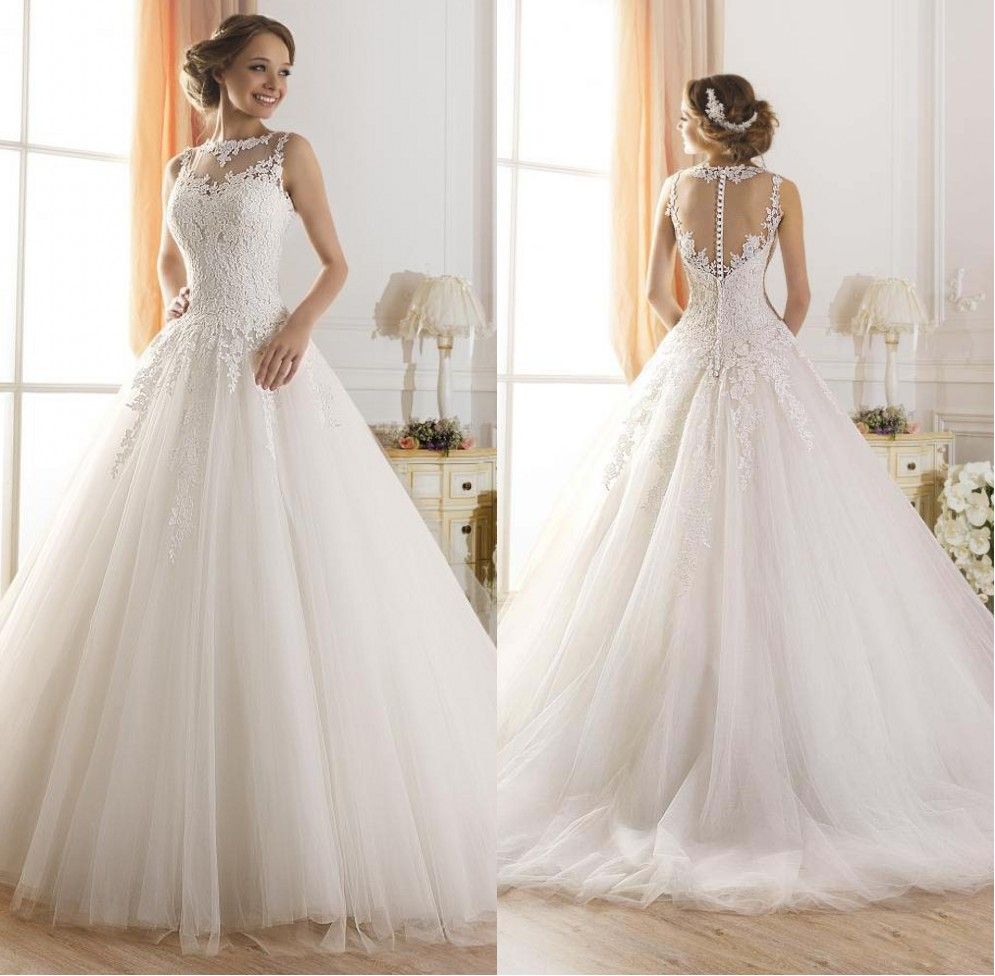 Brautkleid A Linie Spitze Tull Prinzessinnen Brautkleider Mit A