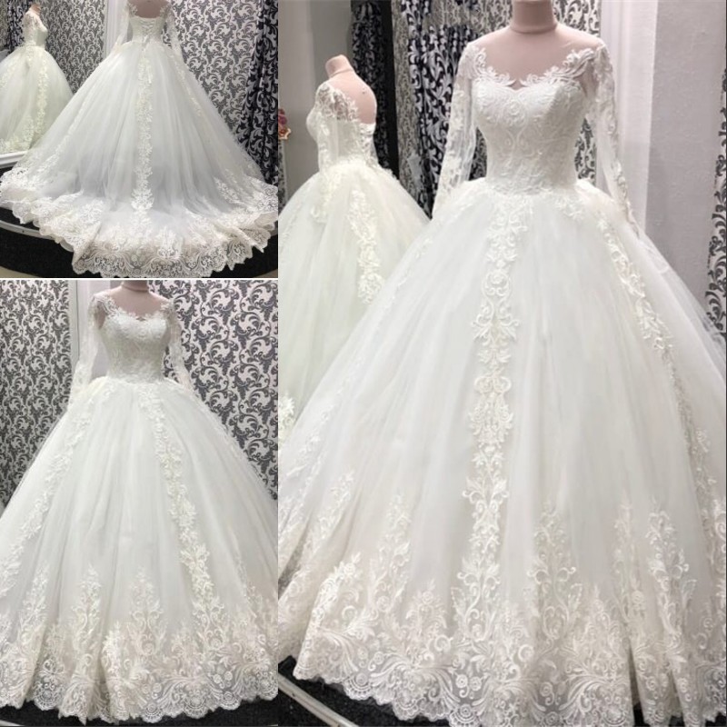 Elegante Weiss Brautkleider Grosse Grosse Lang Armel Spitze Ubergrosse