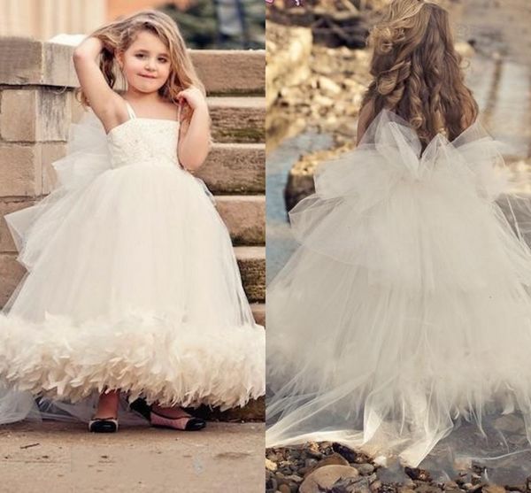 Grosshandel Weiss Elfenbein Tull Blumenmadchen Kleid Fur Hochzeit